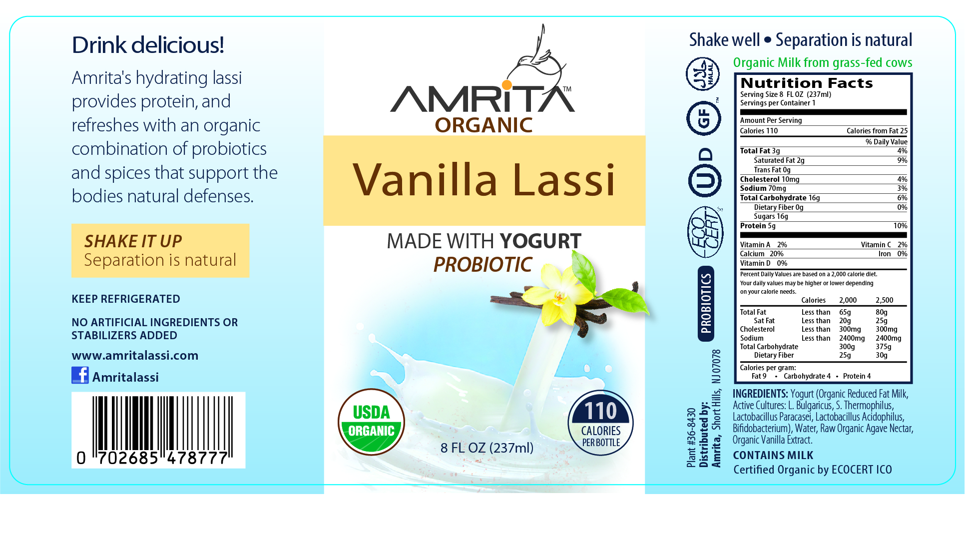 Organic, Probiotic Vanilla Lassi